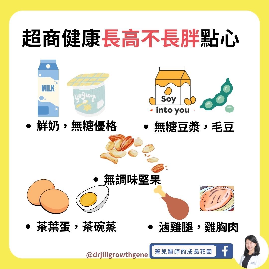 先強調,以原型(未加工)食物,如果可以自己準備最好。如果非得在外面買,超商食品仔細挑選,也能挑到較健康營養,能夠長高不長胖的點心喔!