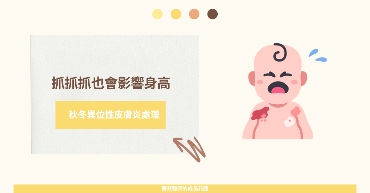 秋冬時節是過敏兒的好發時間,最近門診發現異位性皮膚炎發作的孩子明顯變多了!其實 過敏像是異位性皮膚炎也會影響成長喔 !