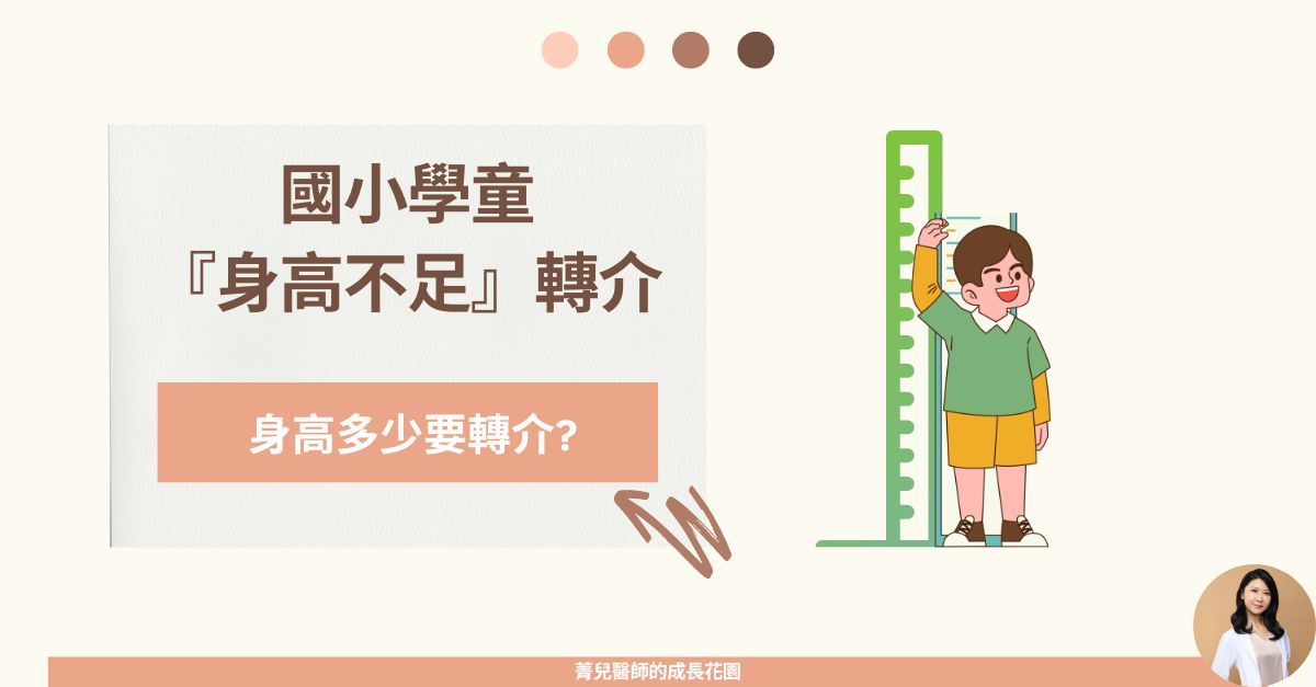 作者:陳菁兒「才開學不久...就收到這個說小朋友身高不足要來看醫生!」媽媽一臉擔心的拿出通知單來最近幾週,陸續了一些帶著『通知單』來門診的孩子。其實從國小開始,在每個學年初始,學校都會測量學童的身高、體重,是一個確認孩子生長的好時機。兒童生長的重視越早越好,早自民國89年起,教育部與行政院衛生署就開始進行「國民中小學疑似身高生長遲滯學生轉介醫療實施計畫」,建立生長遲緩醫療轉介系統,協助身高不足的孩子及時把握治療時機。身高多少需要轉介?怎麼樣算長太矮?這也是爸爸媽媽很常詢問的問題喔!主要以我們同年齡的身高百分位3%左右作為切點需要轉介的身高如下:一年級(滿 6足歲)身高低於107公分二年級(滿 7足歲)身高低於110公分三年級(滿 8足歲)身高低於116公分四年級(滿 9足歲)身高低於120公分五年級(滿10足歲)身高低於125公分六年級(滿11足歲)身高低於130公分長的太慢也需要注意除了長太矮,如果長的太慢,一年長不到4公分,也是懷疑生長遲滯的重要警訊!收到身高體重紀錄單的家長可以留意,上下學期的身高紀錄差了多少?拿到通知單要做什麼?影響正常生長因素很多,包括:遺傳或染色體疾病、內分泌問題或營養不足...等,其中如透那氏症、生長激素缺乏症、甲狀腺低下,如果在孩子發育完成前給予適當治療,可以明顯改善身高不足的狀況。因此拿到轉介單的孩子,要請爸爸媽媽帶至「兒童新陳代謝或兒童內分泌專科」進一步評估,把握治療時機。國小前怎麼知道身高有沒有小於3%有些學齡前的爸爸媽媽可能會擔心『天啊要等到國小才知道生長有沒有問題,會不會太晚了!』如果想知道學齡前孩子的發育狀況,可以使用這個衛福部提供的0-7歲生長曲線計算機: https://health99.hpa.gov.tw/onlineQuiz/child點擊以上連結,輸入出生日期和身高體重​​等​​​​基本資料,系統會自動幫您算出生長百分位喔!菁兒醫師小叮嚀每個學年初始,學校都會測量學童的身高、體重,是一個確認孩子生長的好時機。如果身高<3%或 一年長高<4cm,懷疑生長遲滯,請至「兒童新陳代謝或兒童內分泌」專科評估 !~菁兒醫師陪你身高超前部署~延伸閱讀...【兒童成長】生長曲線是評估生長的重要指標