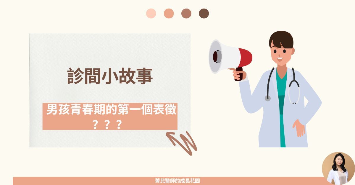 「哇!怎麼變這麼大!」脫下褲子瞬間媽媽大聲驚呼加倒退一步也差點嚇到我跟旁邊的護理師媽媽又一次大聲驚呼「我以為他都還沒開始長大耶!什麼時候開始轉大人的啦!」我解釋「確切是什麼時候不容易判斷,但確定的是弟弟已經進入青春期一段時間了。」媽媽似乎又點自責的說「到底是什麼時候開始的?我怎麼會都沒發現!」我安慰媽媽「小男孩剛進入青春期的第一個表徵是睪丸開始變大,但這個年紀的孩子通常都自己洗澡,的確比較不容易觀察。」我頓了頓「弟弟是在正常時間發育的孩子,並沒有性早熟的問題。不過他目前的骨齡比實際年齡要略大一些,必須密切追蹤,確認生長速度和骨齡的變化,才不會影響到最後的成人身高。」媽媽聽後似乎鬆了一口氣,但也不忘追問「那這麼難觀察的話,我們回家有沒有什麼方式可以稍微注意一下?」我告訴媽媽「其實有一個簡單的方法喔!在家裡媽媽可以用自己大拇指的第一個指節當作簡單判斷標準,蛋蛋大小超出很可能進青春期了。」媽媽點點頭表示了解,離開時還不忘預約另一位更小的弟弟來回診。最近成長門診常常遇到上的情況。想提醒家中有男孩的家長,小朋友可能進青春期的時間比想像中早,且男生進青春期比女生更難分辨。家長如何初步評估是否進青春期,可以參考這篇👉 【兒童青春期】家長如何檢查孩童進入青春期